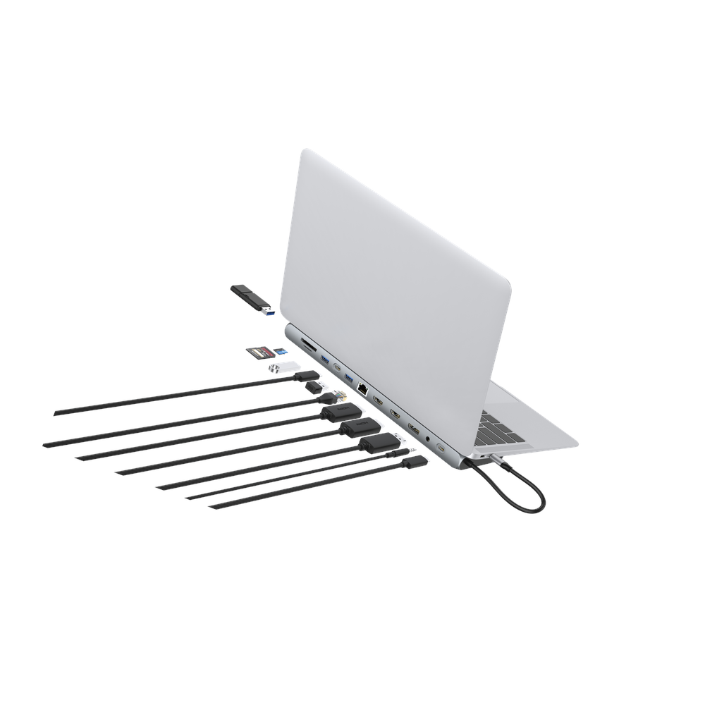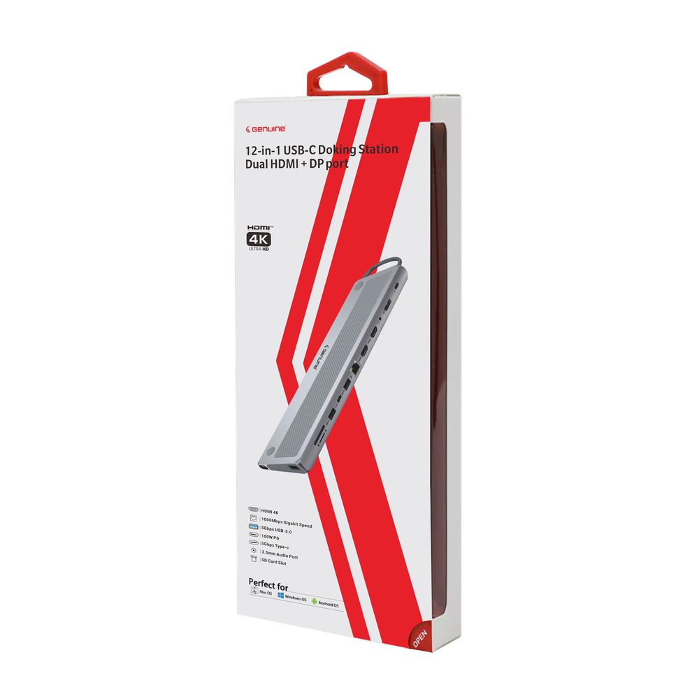 Genuine 12 in 1 Docking Station, 180mm Cable Length, Input USB Type-C 3.1, Transfer rate up to 5Gbps, Fast Charging up to 100W, Sliver/Customized, 1 Year Warranty | GN-DC4CG