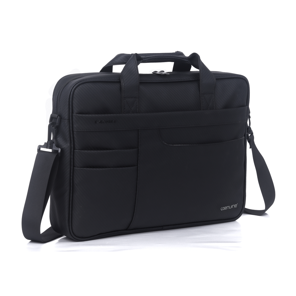 Genuine Executive Topload Laptop Bag, Fits up to 16” Laptops, Premium Polyester Material, Water-Resistant Fabric, Dual Main Compartments, Carry Strap, Black, 1 Year Warranty | GN-B200904BK