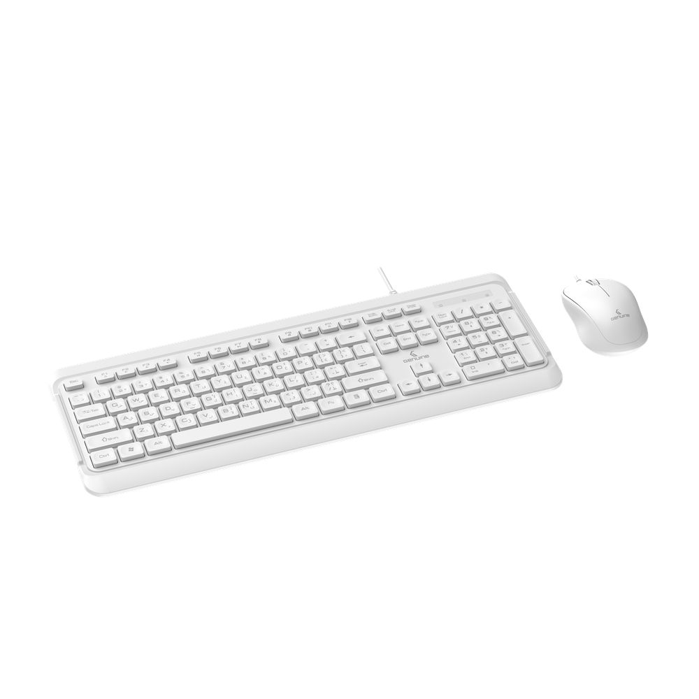 Genuine GN-KM2000 Wired English & Arabic Keyboard & Mouse Combo, Full-Size Low Profile Keyboard with 113 Keys, Spill-Resistant Design, 9 Multimedia Keys, Durable up to 10 Million Keystrokes, 1000 DPI Optical Mouse with Ergonomic Design, USB 2.0, White, 1 Year Warranty | GN-KM2000WT