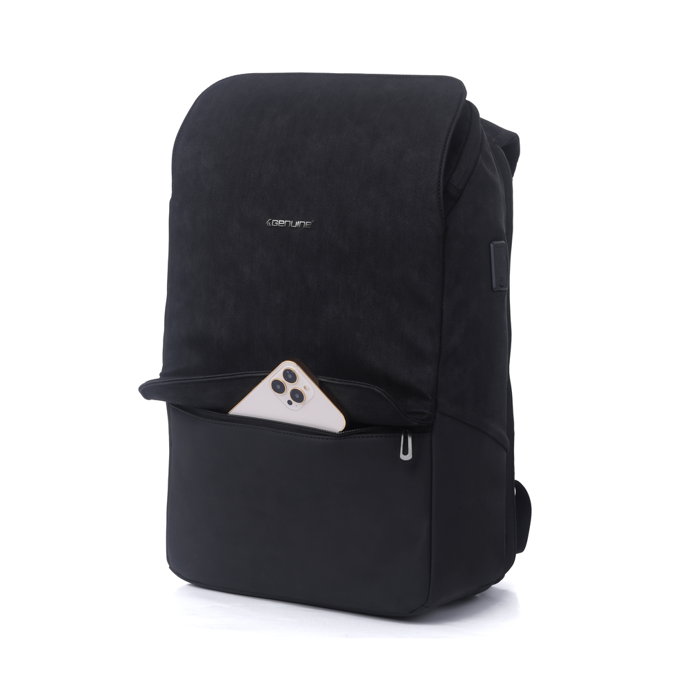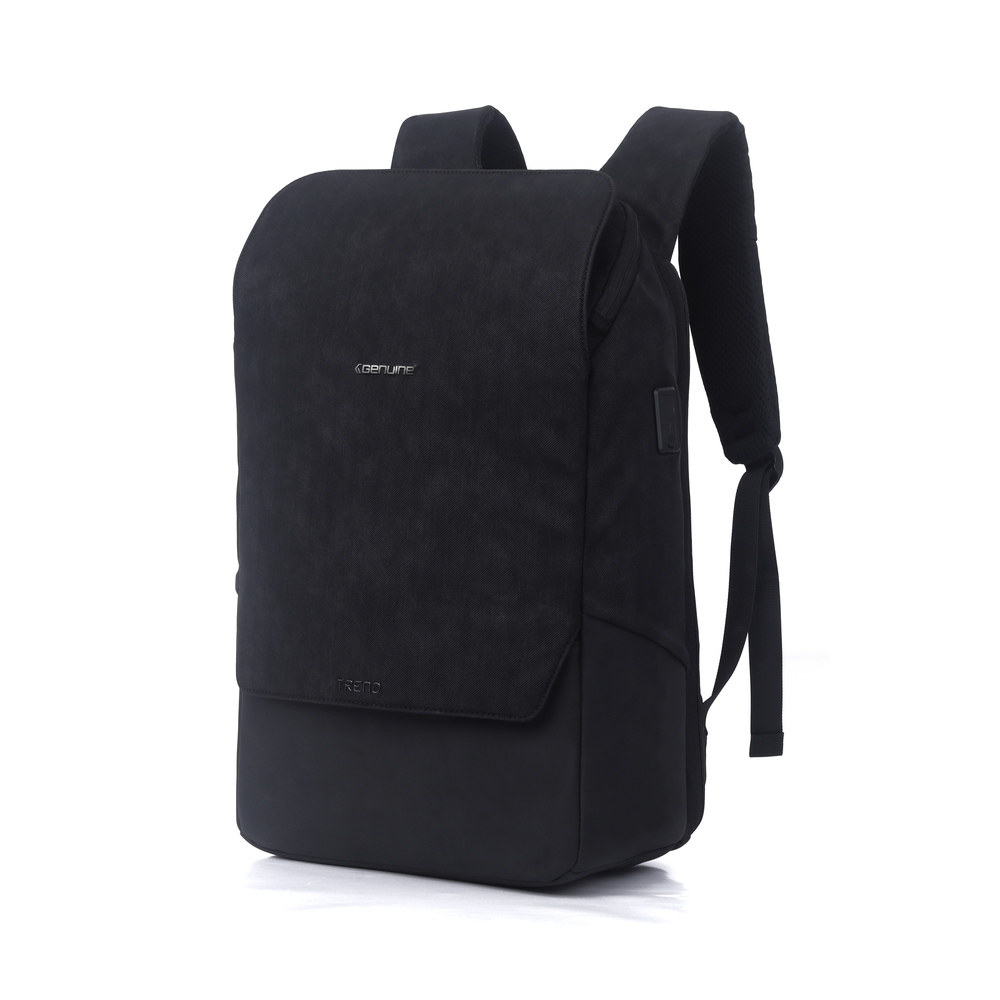 Genuine Trend Laptop Backpack, Fits up to 16” Laptops, High-Quality Polyester, Water-Resistant Build, Type-C USB Port, Carry Strap, Clean Front Design, Black, 1 Year Warranty | GN-B230642BK