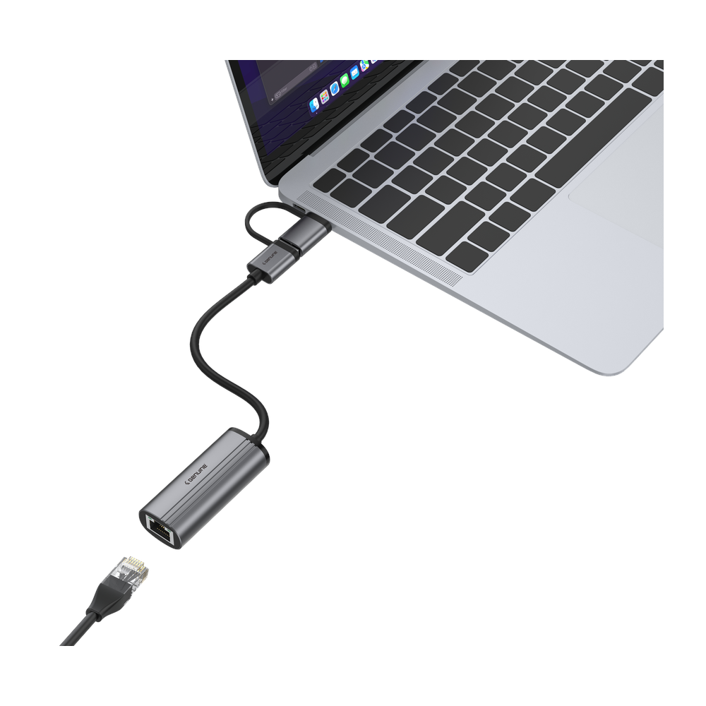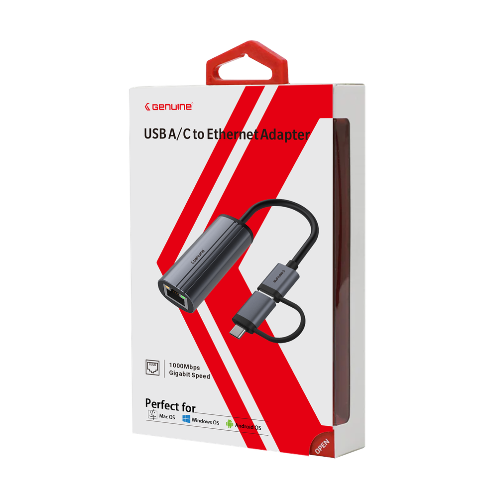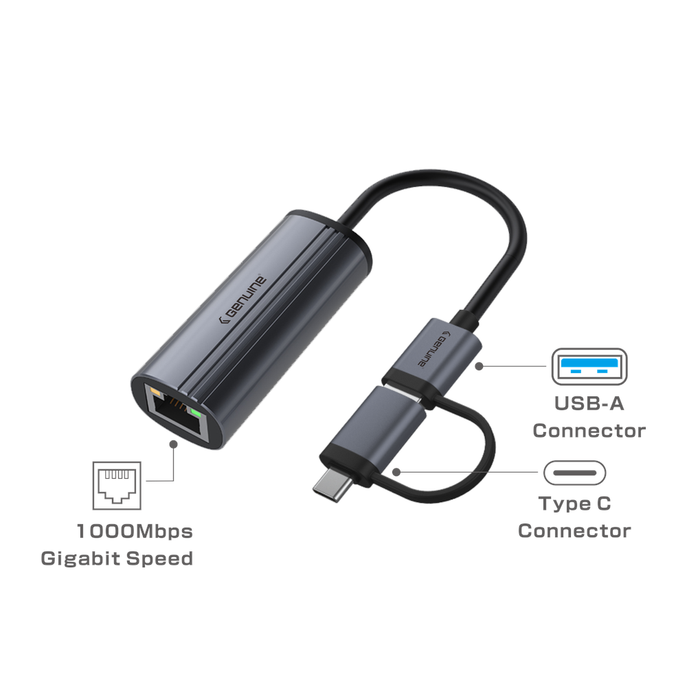 Genuine Type C / A to RJ 45 Adapter, 180mm Cable Length, Input USB-A + C 3.0, Black/Customized, 1 Year Warranty | GN-HC31C