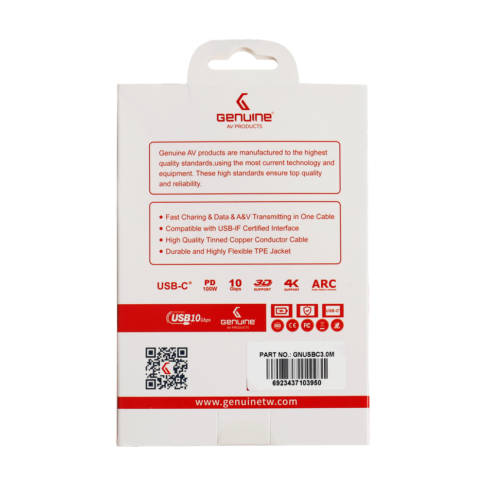 Genuine USB4 Type-C to C Cable, Cable Length 3M, 240W, 40Gps Data Transfer Speed, Aluminium Gray, 1 Year Warranty | GN-USB4-3M-AL