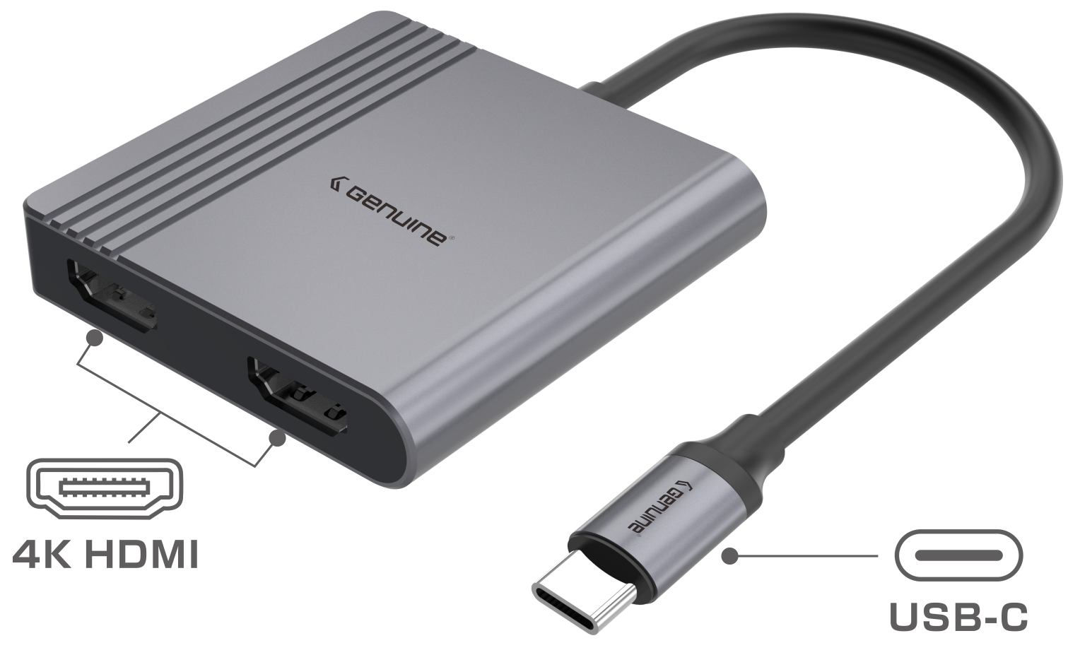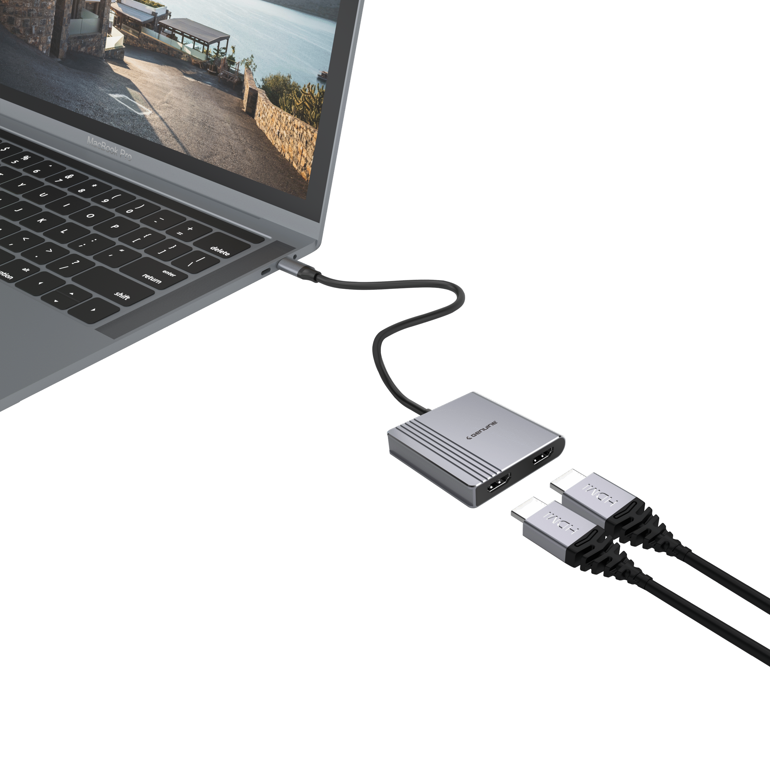 • Input: Type-C 3.1 Male • Output: 2 HDMI ports • Single HDMI resolution up to 4K@60Hz • Dual HDMI resolution up to 4K@30Hz • Material: Aluminum Alloy + ABS • Color: Silver/Black/Customized • Cable Length: 180mm • Packing: Color Box
